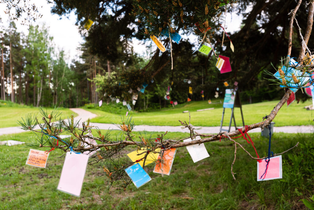 De får også henge opp sine egne refleksjoner på «Verditreet» utenfor Hegnhuset.