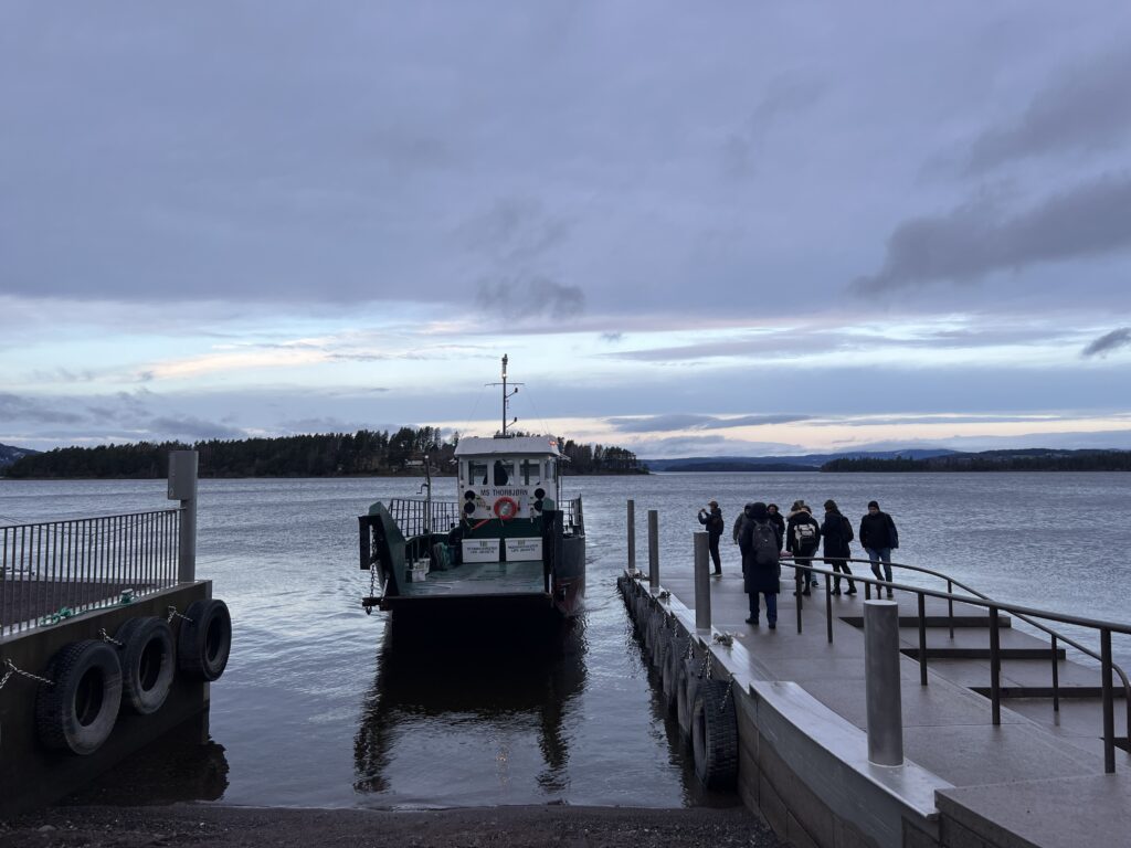 MS «Thorbjørn» tøffer den korte reisen over fjorden. Om bord er 12 ungdomsskoleelever og lærerne deres. Elever fra Slåtthaug, Frydenberg og Lindeberg skole er invitert til å delta på pilot-utgaven av Demokrativerkstedet – en del av det nye nasjonale læringstilbudet «Demokratilæring på Utøya».